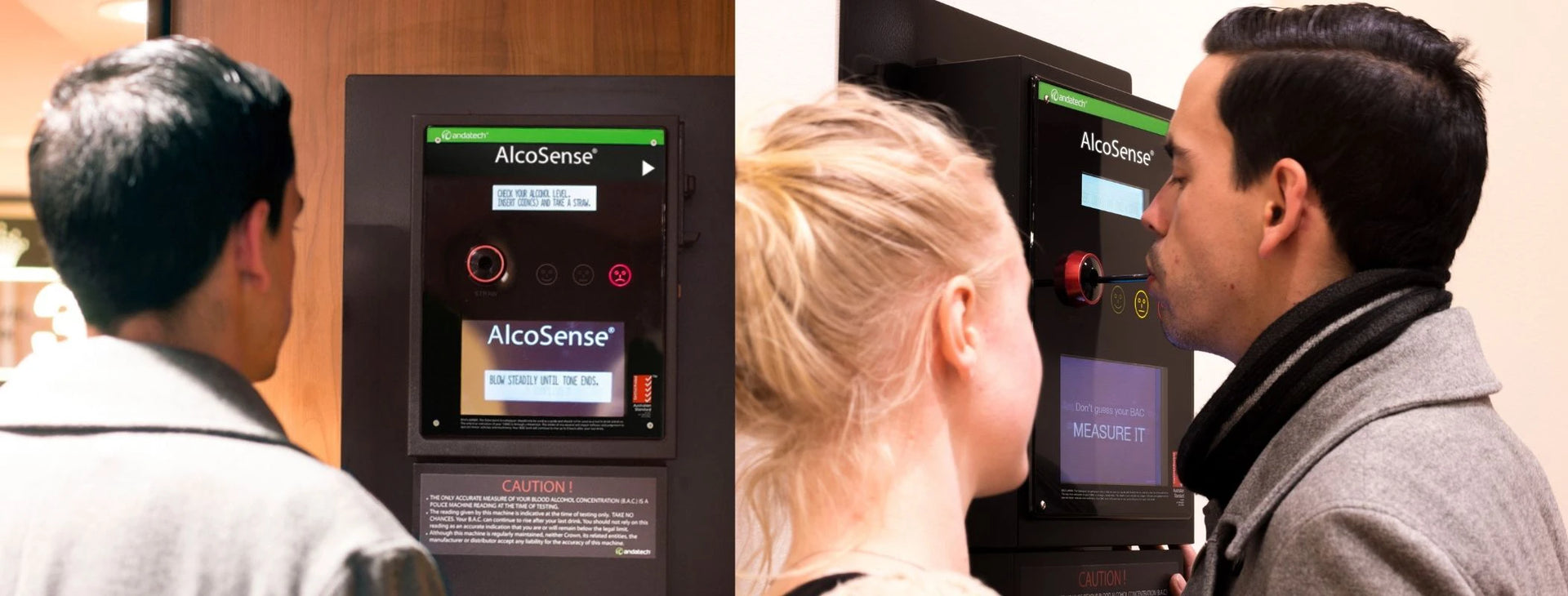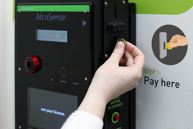 Durable, easy-to-use wall mounted breathalyser. Simply blow through a drinking straw to take a test. Coin & wave payment options available.